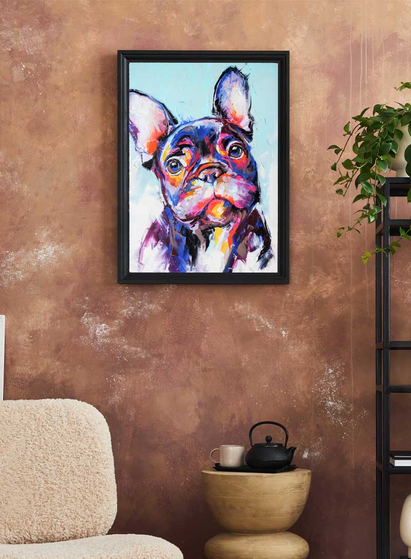 This vivid expressionist piece captures a dog's character in bold strokes. A splash of vibrant colors brings playful energy to any room, making it feel instantly alive and joyful.