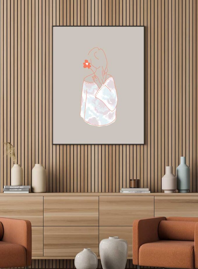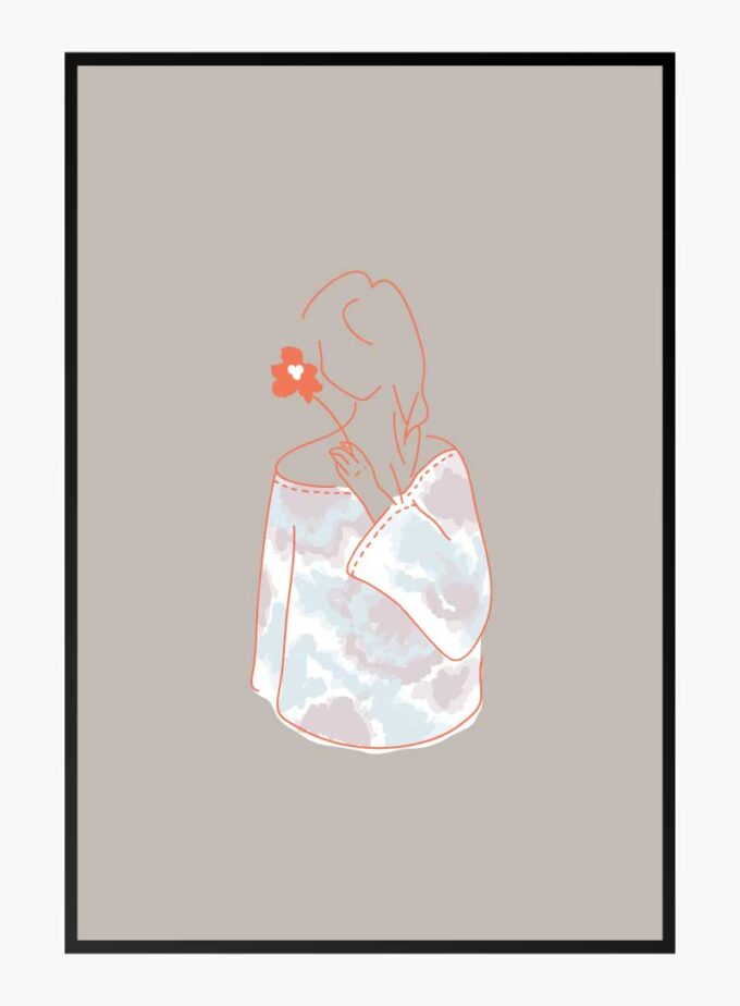 This subtle, line-drawn piece captures a moment of floral reflection, evoking the quiet introspection and serenity within.