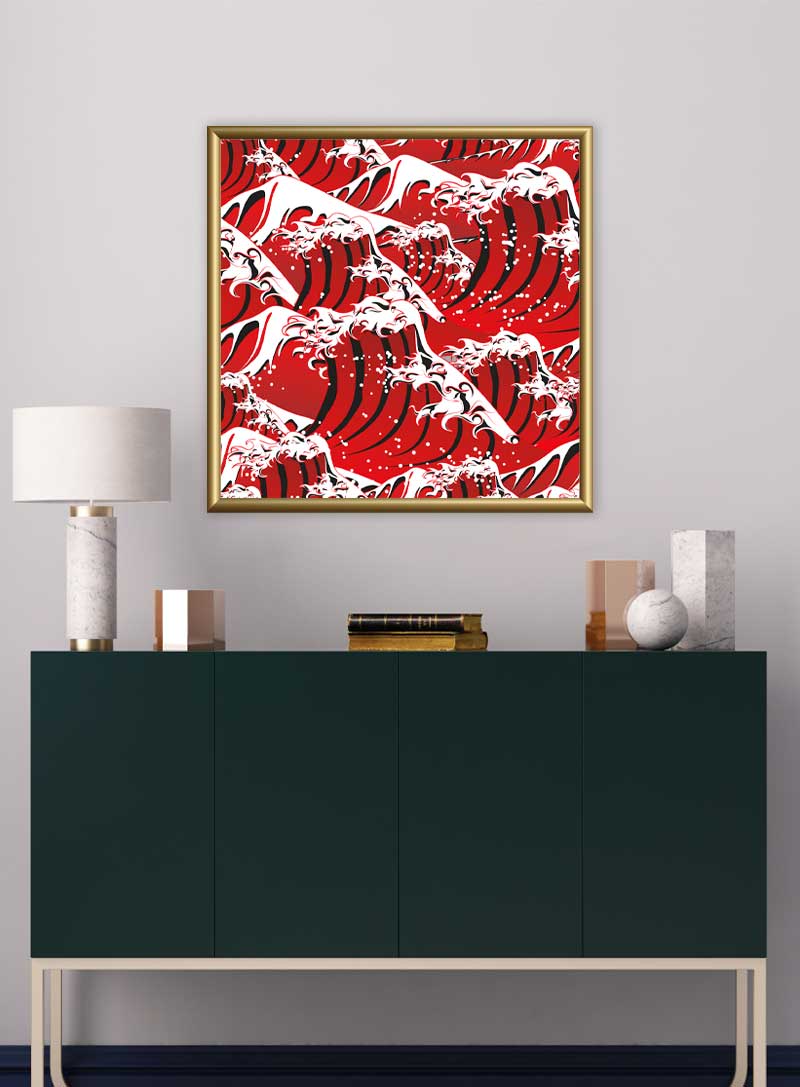 Experience the 'Crimson Wave Fusion', where vibrant waves create a striking visual symphony for any space.