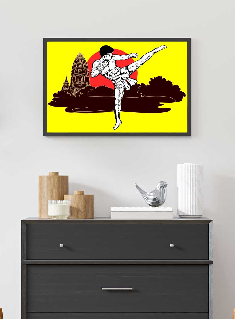 Bold and striking, this piece exudes the power and poise of martial prowess against a cultural silhouette. Perfect for adding a touch of spirited dynamism to any modern living space.