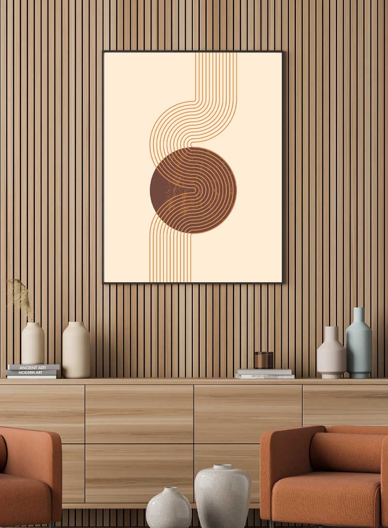 Explore the balance of curves and lines in this minimalist design. The earthy tones and flowing patterns create a sense of harmony, perfect for modern and serene spaces.