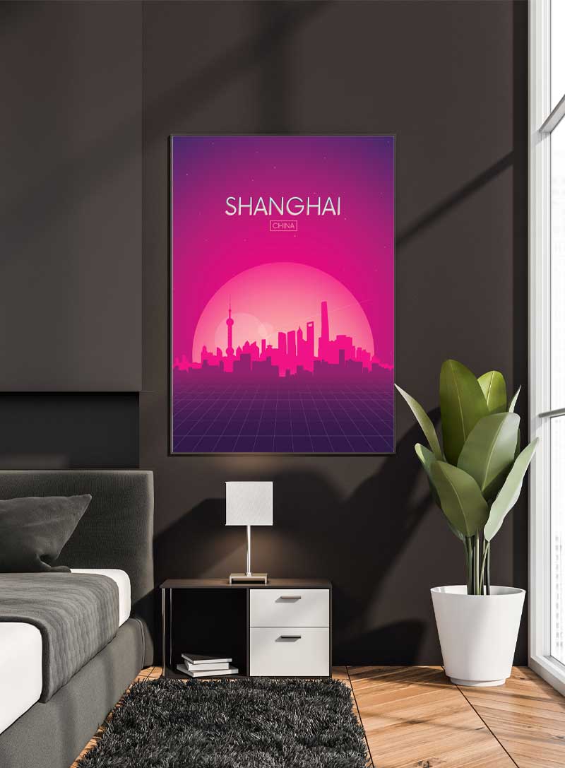 Experience the pulsating energy of Shanghai with this print, where futuristic skylines meet the enchanting colors of twilight, offering a modern take on urban elegance.