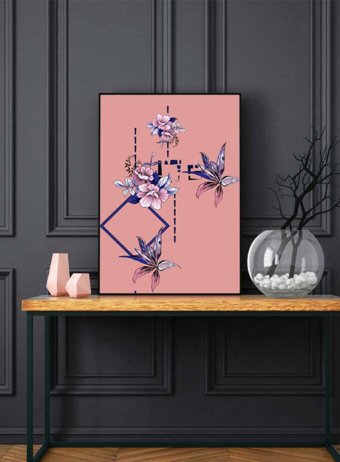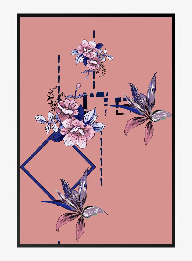 Discover a fusion of nature and design with 'Geometric Blossom Interplay'. Its vibrant floral motifs against a pink backdrop offer a fresh perspective to any space.