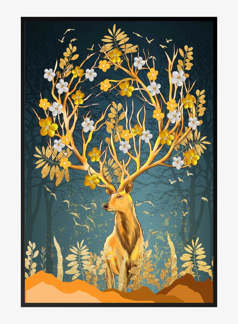 Capturing the mystique of a golden stag in an enchanted forest, this piece creates an aura of wonder, perfect for inviting magical allure into your personal space.