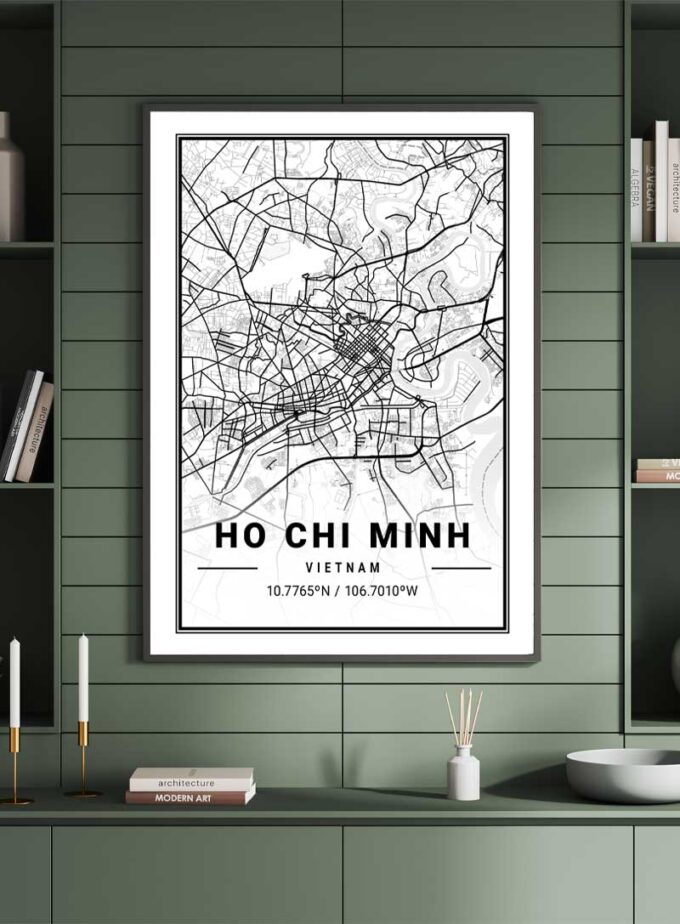 Add an element of dynamic Vietnamese culture with this intricate map of Ho Chi Minh, a statement piece that weaves the city's bustling spirit into your space.