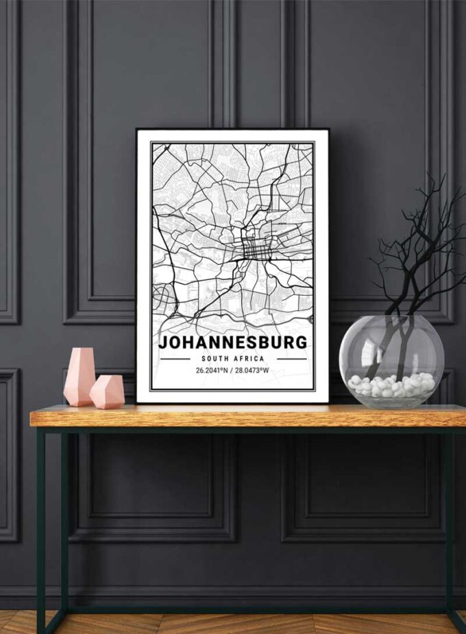 Embark on an urban safari with this detailed map of Johannesburg, artfully capturing the city's vibrant pulse. A chic addition to your space, evoking the dynamic spirit of South Africa.
