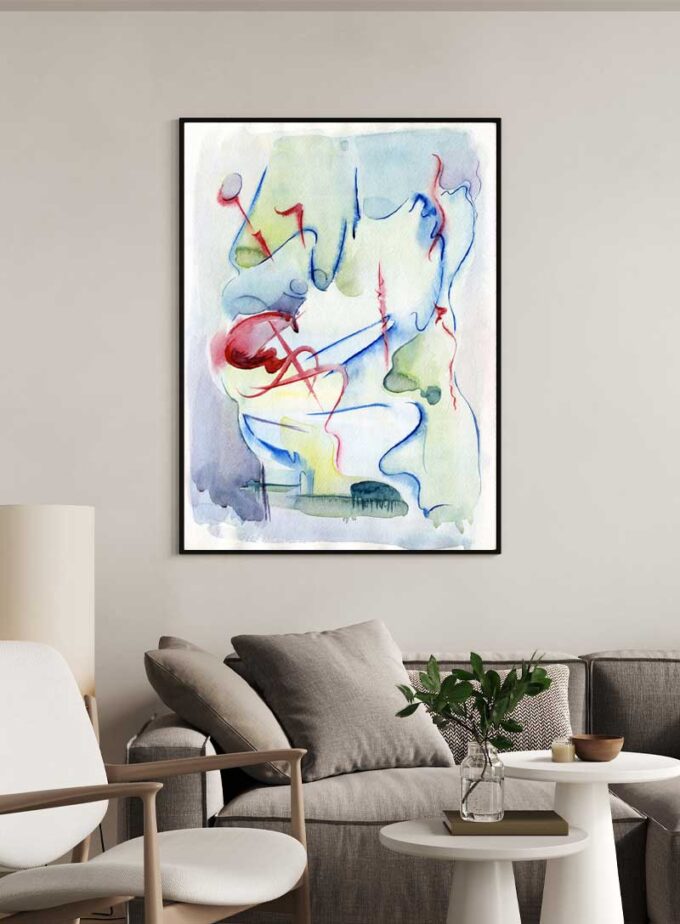 Embark on a sensory journey with this watercolor enigma. Swirls of red and blue evoke a symphony of emotions, perfect for stirring the soul and enlivening any room.