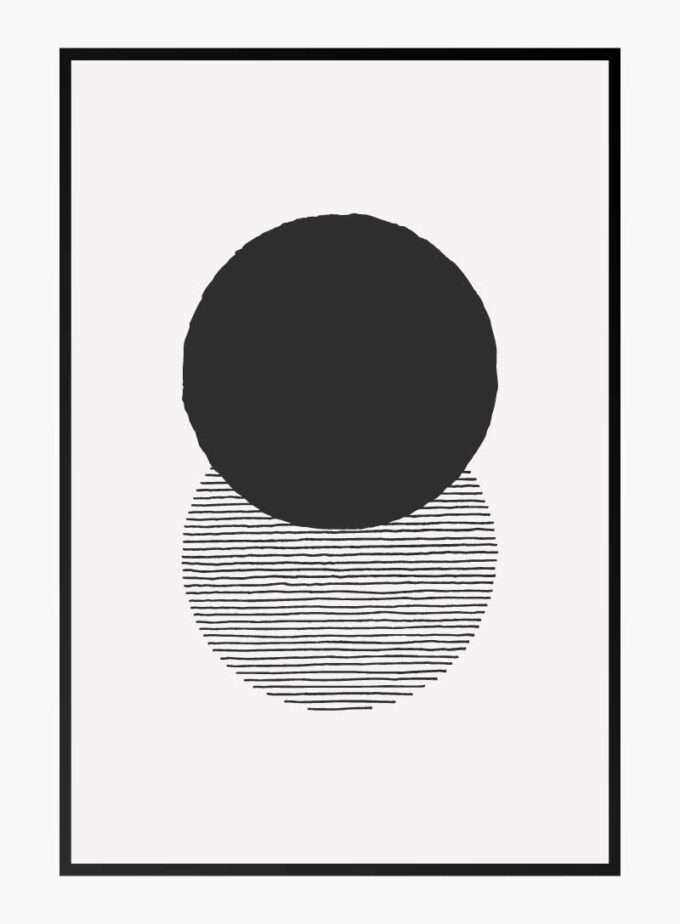 Enhance your space with this striking minimalist artwork. Bold black and white circles create a captivating balance, perfect for adding a touch of modern sophistication to any room.