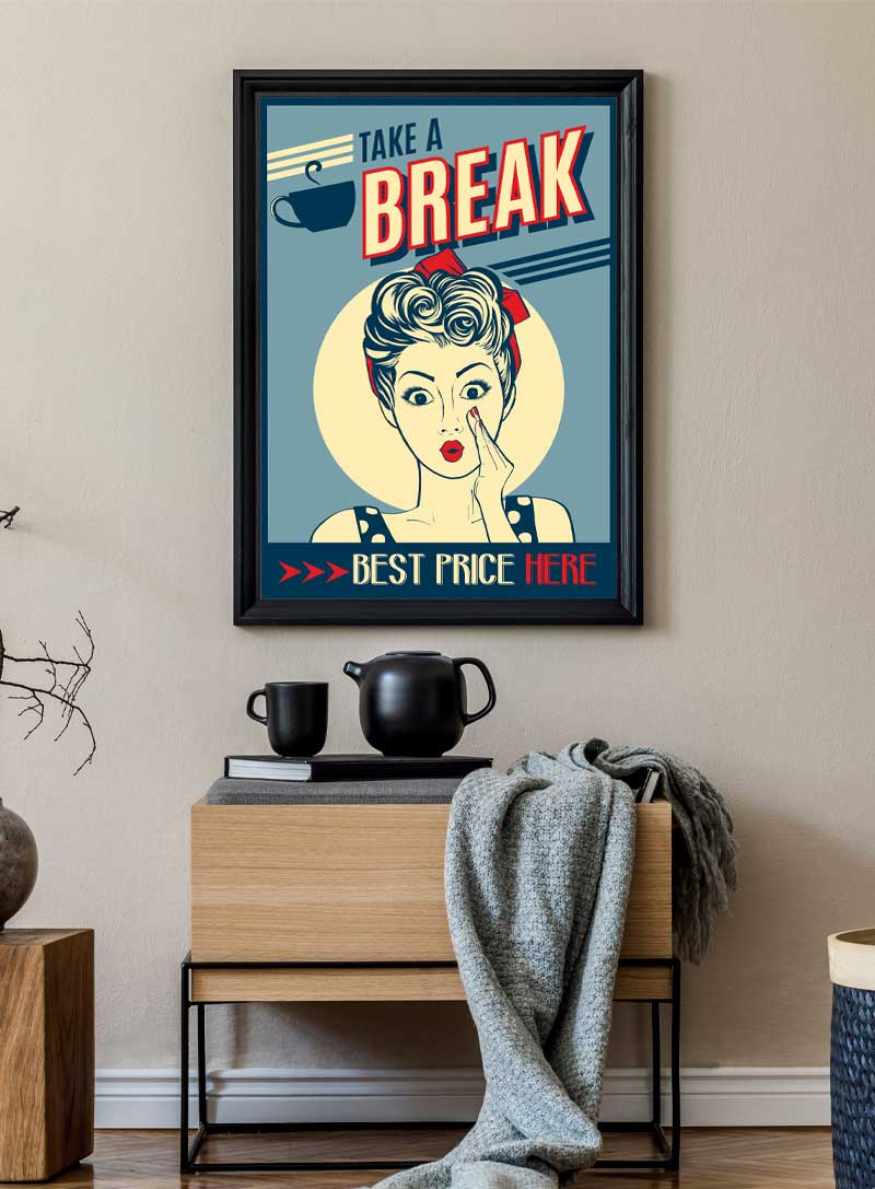 Step back in time with this chic retro print, where vintage whispers of gossip blend with the aroma of fresh coffee. A perfect conversational piece for your cozy nook.
