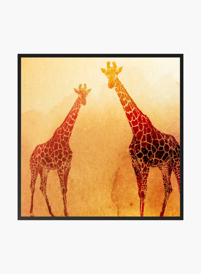 "Savannah Sentinels" captures a serene moment between two giraffes, their elegant forms a tribute to nature's gentle giants against a warm, earthy backdrop.