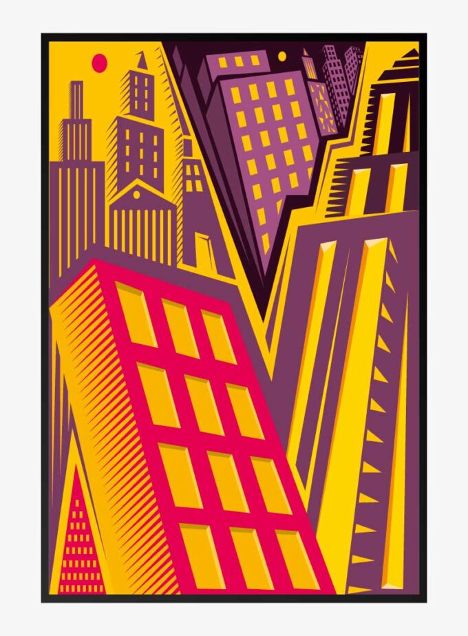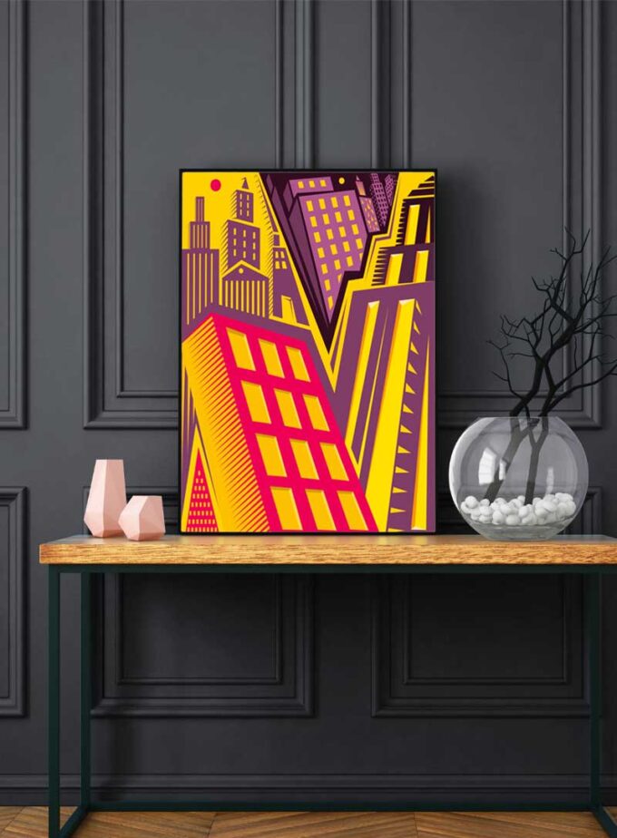 A vibrant tribute to city life, this piece pulses with the energy of a sunset-drenched skyline, offering a bold statement that energizes and inspires any urban space.