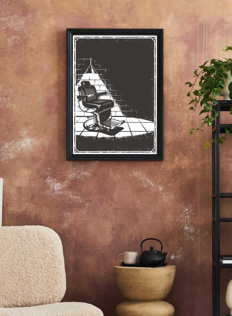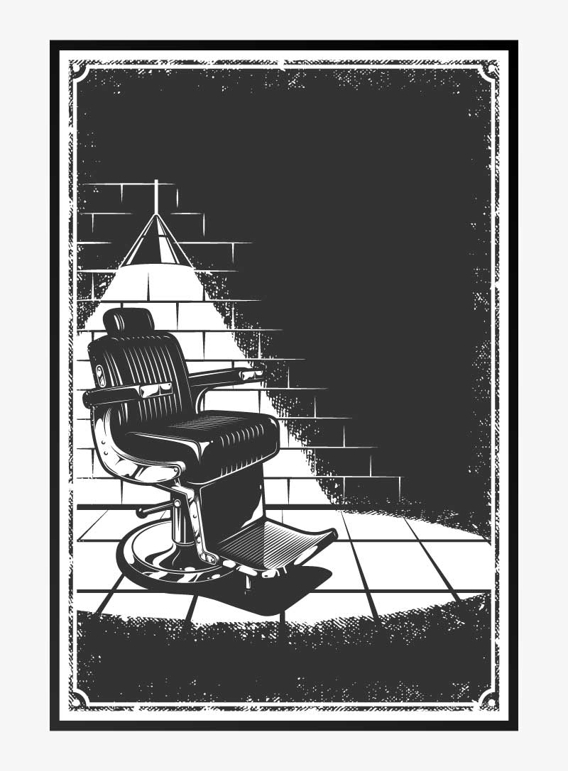 A lone barber's chair basks in the spotlight from an overhead lamp, a silent ode to personal stories and quiet moments of transformation.