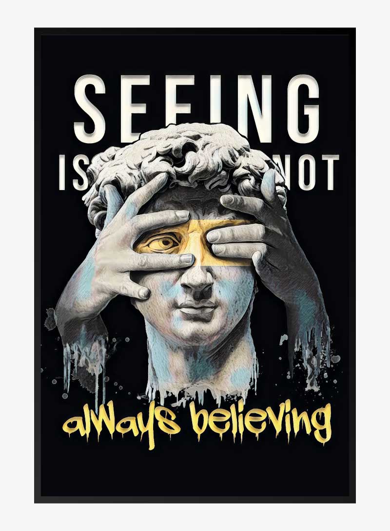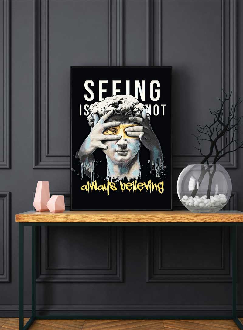 Challenge the seen and unseen in your space with this striking piece, blending classical art with a modern twist on perception and reality.