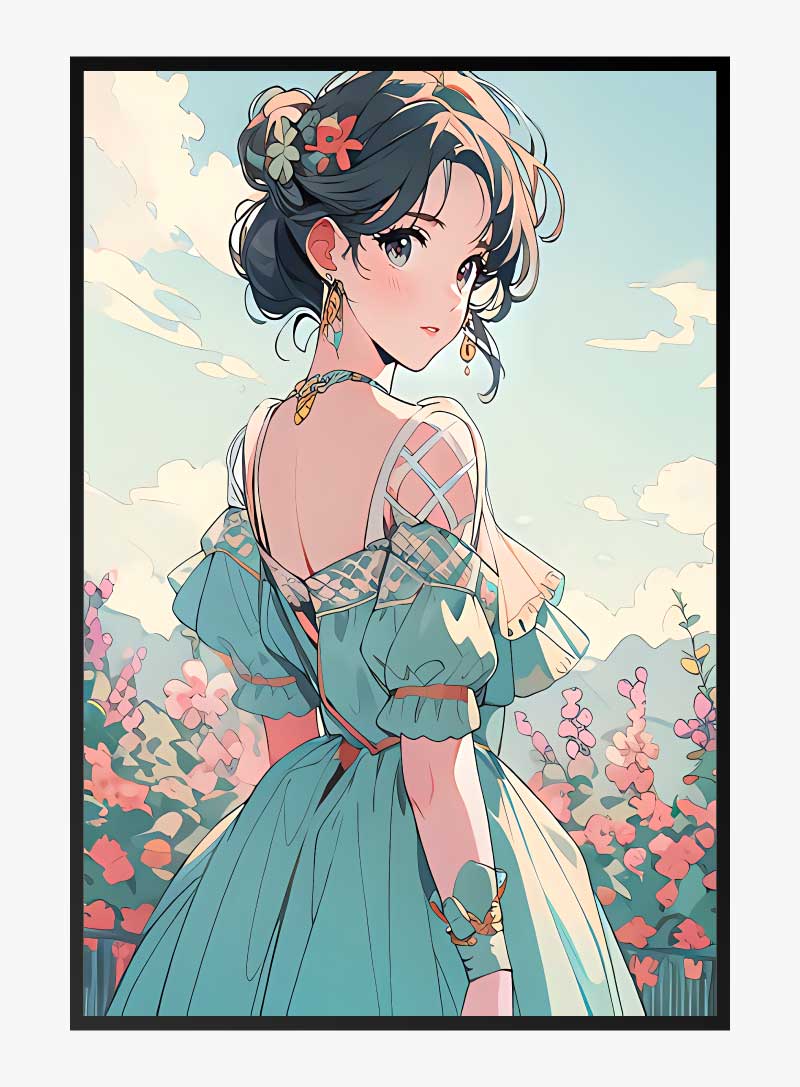 Adorn your home with 'Spring Gaze', a modern illustration that captures a moment of fleeting youth amidst the blush of cherry blossoms.