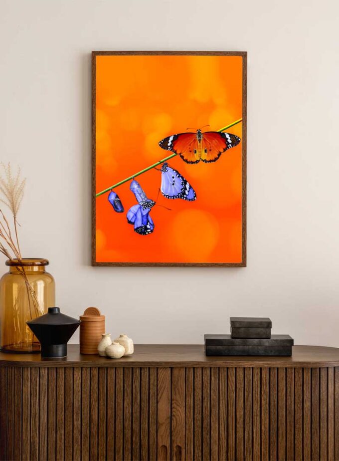 เติมสีสันให้พื้นที่ของคุณด้วยการเต้นรำอันงดงามของผีเสื้อโมนาร์ช ปีกของพวกมันแต่งแต้มอากาศท่ามกลางฉากหลังที่ร้อนแรง เป็นการประกาศอย่างชัดเจนถึงความงดงามของธรรมชาติ.