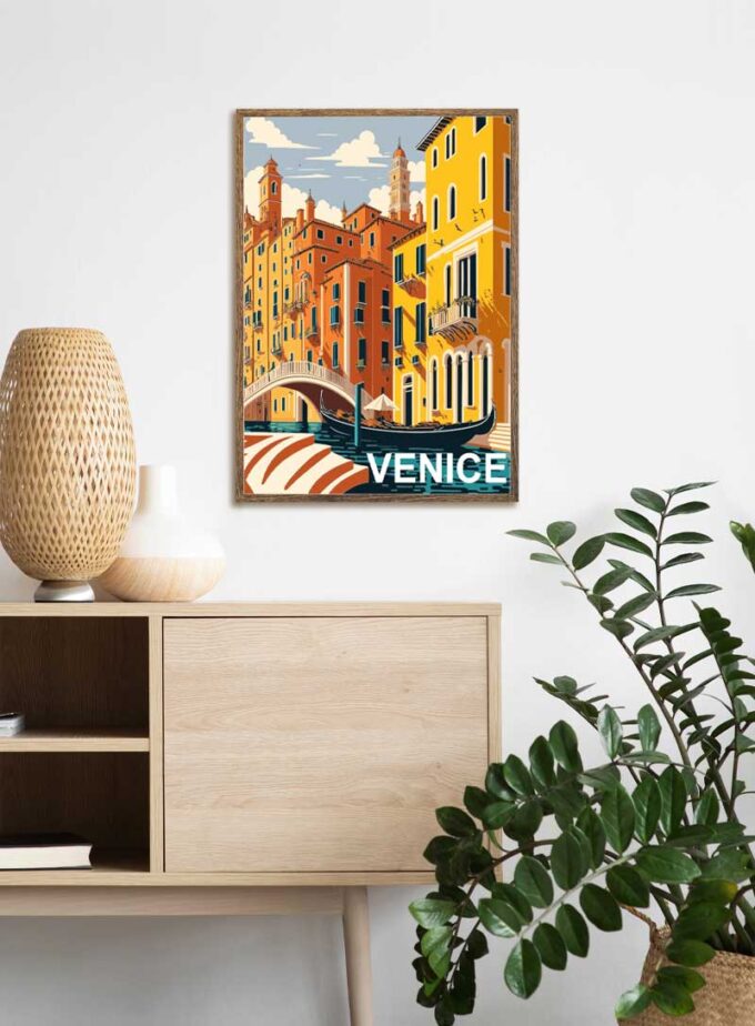 ล่องลอยไปตามคลองอันเงียบสงบของเวนิสด้วยภาพวาดอันงดงามนี้ ที่ซึ่งแสงและเงาที่เต้นระยิบระยับสะท้อนความสง่างามเหนือกาลเวลาของเมืองนี้.