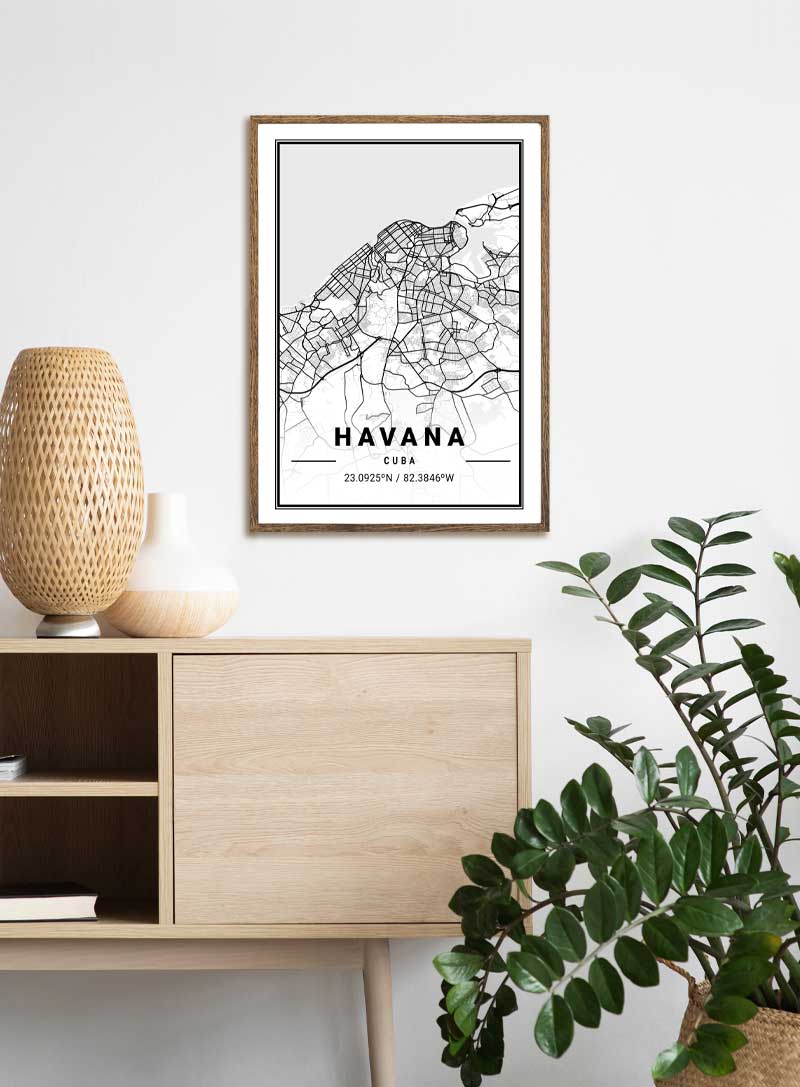 สัมผัสชีวิตชีวาของถนนที่คึกคักในฮาวานาได้ในบ้านของคุณด้วยแผนที่ศิลปะที่มีรายละเอียดครบถ้วนนี้ ซึ่งสะท้อนถึงจังหวะและจิตวิญญาณของคิวบาอย่างแท้จริง.