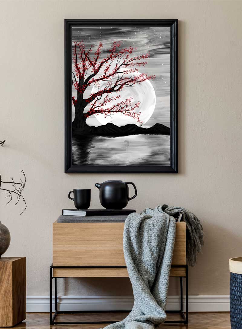 "Moonlit Sakura Whisper" ถักทอเรื่องราวอันเงียบงันของท้องฟ้ายามค่ำคืนที่ถูกเจาะทะลุด้วยดอกซากุระสีสันสดใส เป็นบทเพลงสรรเสริญบทกวีอันเงียบงันของธรรมชาติที่สะกดใจและปลอบประโลมจิตวิญญาณ.