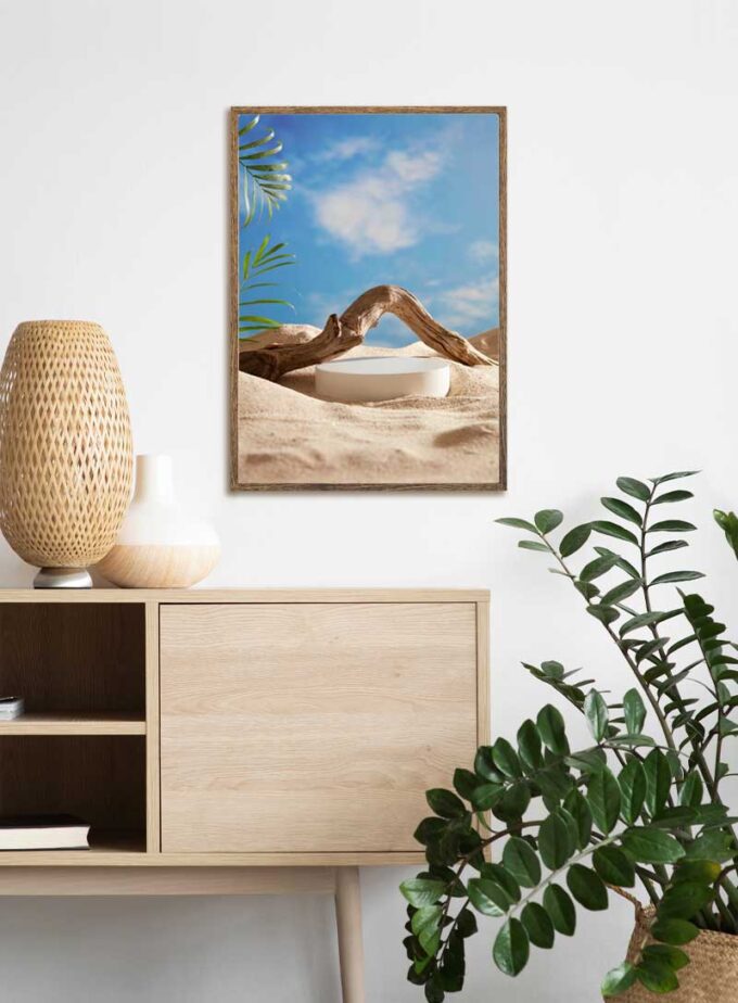 ภาพพิมพ์นี้เปี่ยมด้วยความเรียบง่ายตามธรรมชาติ ถ่ายทอดภาพโค้งของท่อนไม้ที่ลอยมาตามน้ำ โอบอุ้มความสงบ สร้างบรรยากาศที่ผ่อนคลายในทุกสถานที่ที่หรูหรา