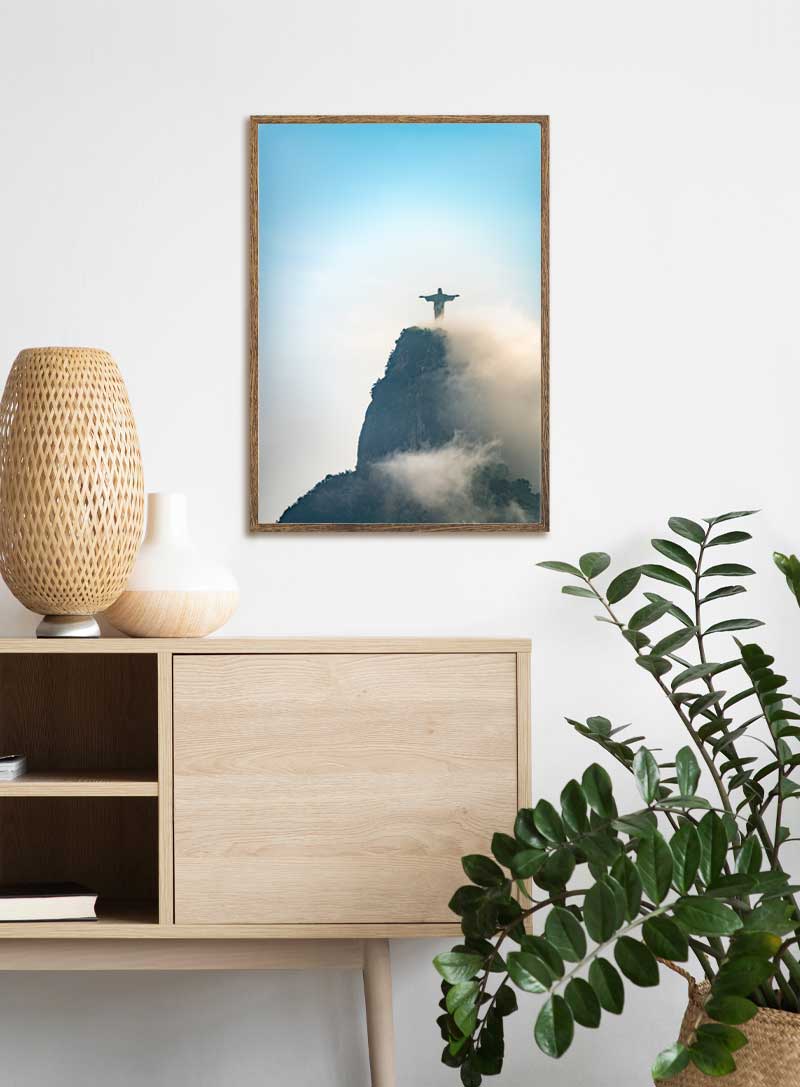 ภาพอันงดงามนี้แสดงให้เห็นรูปปั้นอันเป็นสัญลักษณ์แห่งสันติภาพและความใฝ่ฝันของเมืองริโอเดจาเนโร ที่ถูกปกคลุมด้วยหมอก เหมาะอย่างยิ่งสำหรับการสร้างบรรยากาศแห่งความสงบและความประทับใจในทุกห้อง.