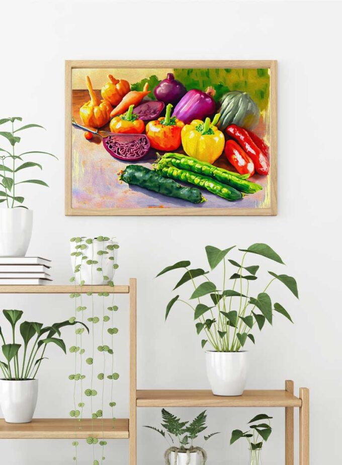 ร่วมเฉลิมฉลองความงดงามของผลผลิตสดใหม่จากสวนด้วยงานศิลปะชิ้นนี้ ซึ่งเป็นการยกย่องความงดงามอันอุดมสมบูรณ์ของสีสันแห่งธรรมชาติ.