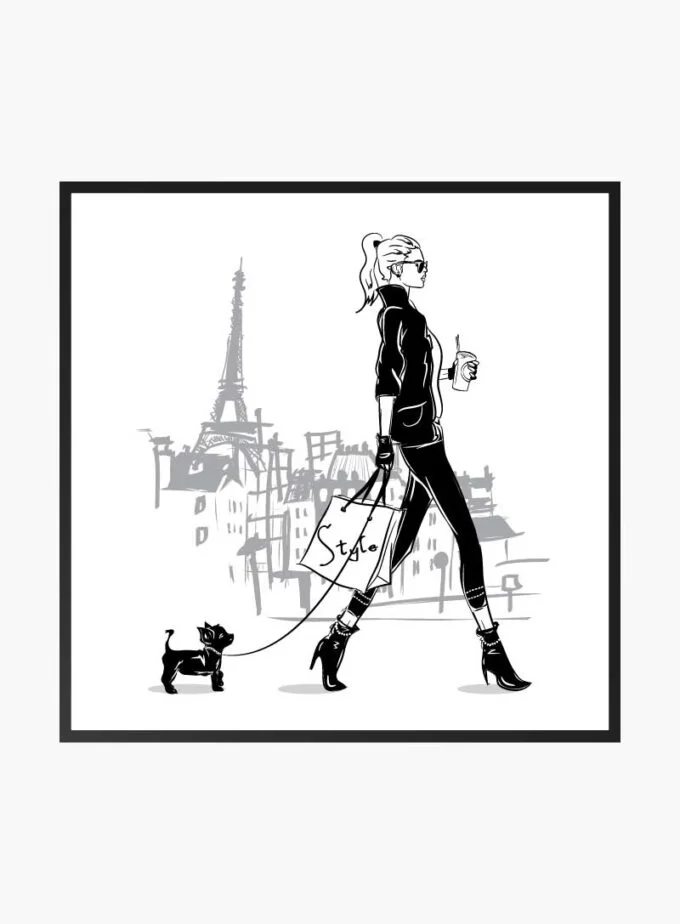 Channel the elegance of Paris with this monochromatic artwork, where fashion and the city's silhouette blend to elevate your decor's sophistication.